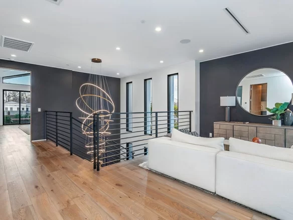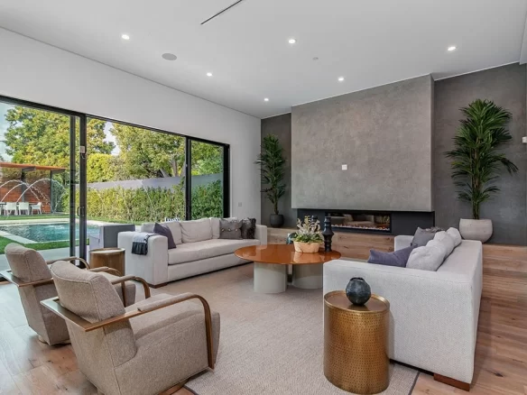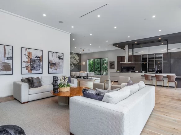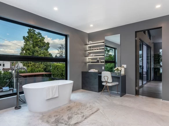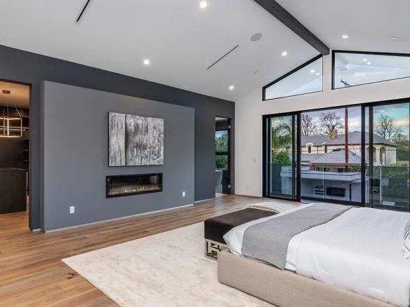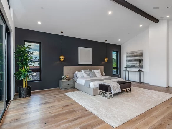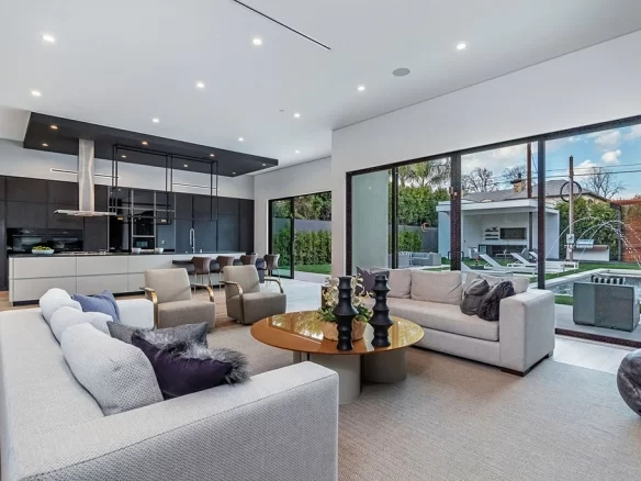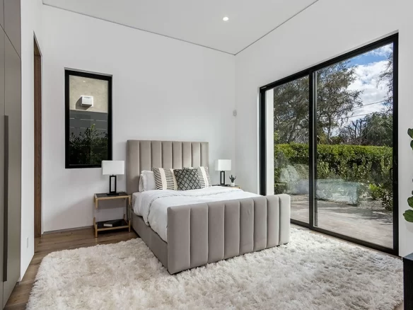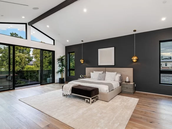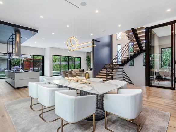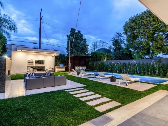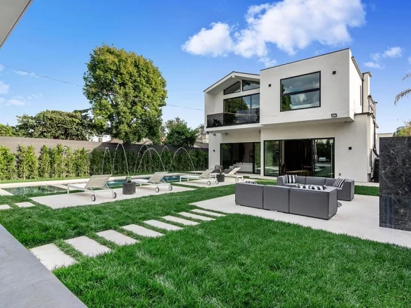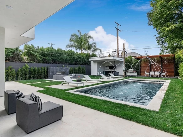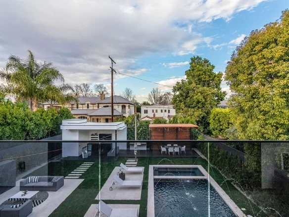 Stunning 2020 new construction in the heart of Toluca Lake, designed and built by Arzuman Brothers. This architectural beauty was designed from top to bottom, and features the finest materials along with unmatched craftsmanship. Upon entry you are greeted with open space and the perfect blend of inside/outside flow. Prepare your best dishes in the gourmet kitchen that includes Miele and Thermador appliances, a spacious large island, custom made cabinetry, and an attached breakfast table. A few of the many features in the lavish backyard include a large pool & spa with fountain jets, outdoor kitchen, poolside cabana, and outdoor shower with bathroom. Green trees and bushes surrounding the backyard create the ultimate privacy and the perfect place to entertain. Inside you will find 5 en-suites guest bedrooms, a study, and multiple lounge areas throughout.