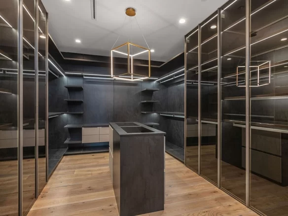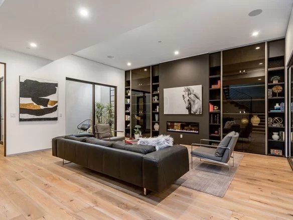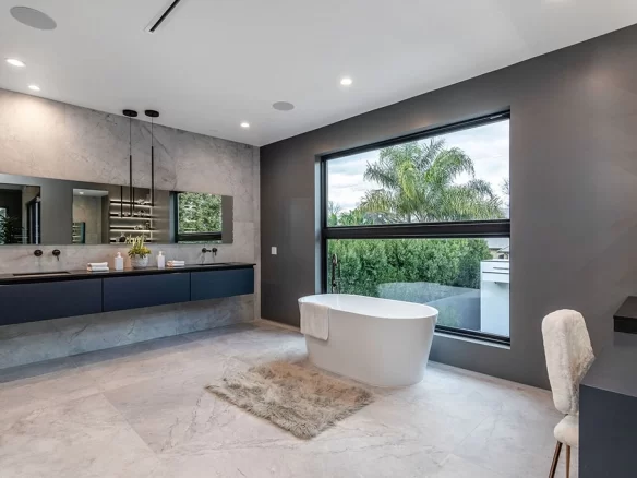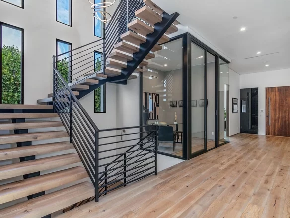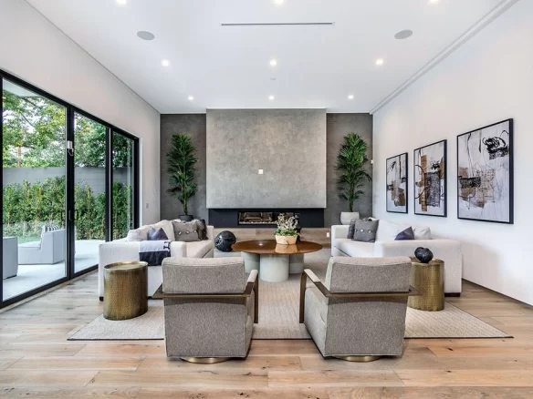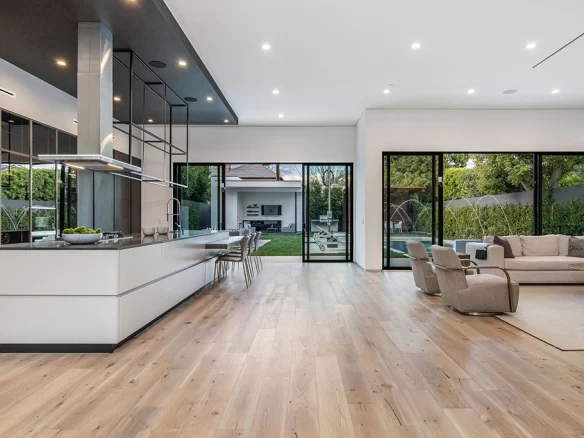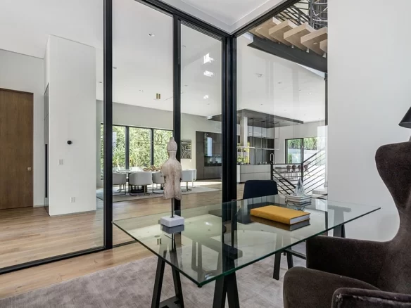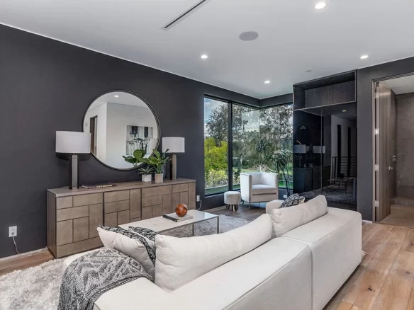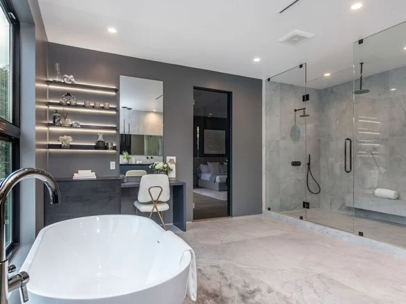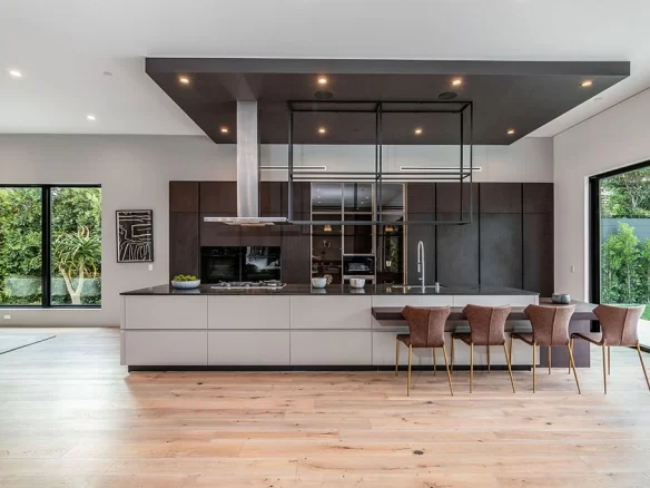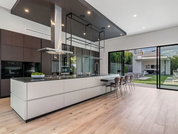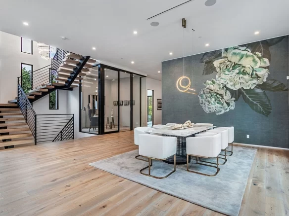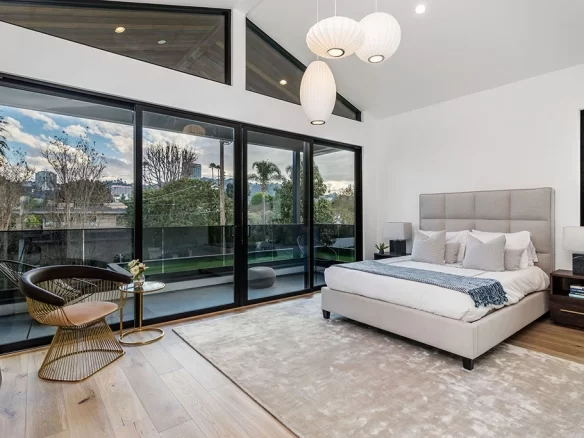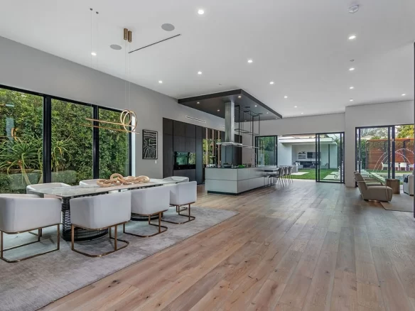 Stunning 2020 new construction in the heart of Toluca Lake, designed and built by Arzuman Brothers. This architectural beauty was designed from top to bottom, and features the finest materials along with unmatched craftsmanship. Upon entry you are greeted with open space and the perfect blend of inside/outside flow. Prepare your best dishes in the gourmet kitchen that includes Miele and Thermador appliances, a spacious large island, custom made cabinetry, and an attached breakfast table. A few of the many features in the lavish backyard include a large pool & spa with fountain jets, outdoor kitchen, poolside cabana, and outdoor shower with bathroom. Green trees and bushes surrounding the backyard create the ultimate privacy and the perfect place to entertain. Inside you will find 5 en-suites guest bedrooms, a study, and multiple lounge areas throughout.