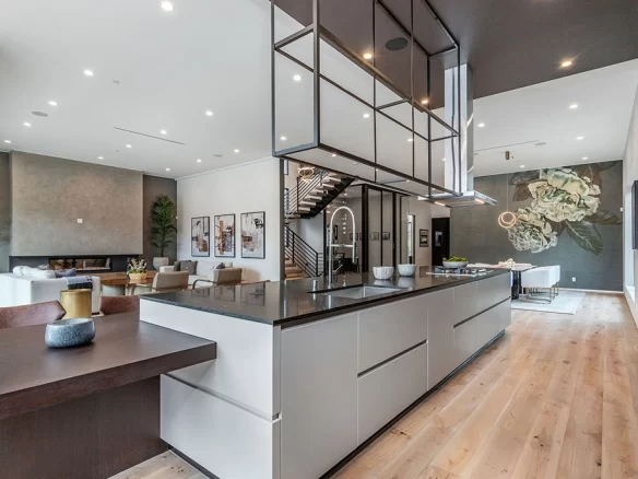 The massive basement features a lounge area, an outdoor patio, a movie theatre, and a gym with sauna. On the second story, enjoy views of the of the famed Lakeside Golf Club. As you retreat to the master suite you are met with a perfect harmony of high ceilings, a beautifully crafted bath, a large balcony, and a dramatic walk-in closet. Moments away from shops and restaurants on Riverside Drive. Features a Smart house.