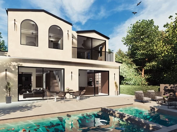 Situated in the coveted Alphabet Streets of Pacific Palisades, this transitional contemporary residence offers an unparalleled living experience. Meticulously designed to blend the best of modern elegance with functional luxury, the home captivates with its thoughtful layout and exquisite finishes. As you step inside, the open floor plan unfolds before you, characterized by soaring ceilings and vast windows that invite an abundance of natural light, highlighting the home’s flawless craftsmanship and sophisticated style. The living space, designed with entertaining in mind, flows effortlessly into a state-of-the-art kitchen, where every detail has been considered for both aesthetic appeal and practical use. The heart of this remarkable home is its private courtyard. Centrally located, it presents an idyllic setting for alfresco dining and leisure, enveloped by the tranquil ambiance of its surroundings and adjacent to the outdoor pool and spa. Below, a spacious basement transforms into an ultimate entertainment zone, complete with areas for relaxation and social gatherings. These features offer a private oasis for enjoyment and relaxation. Upstairs, privacy and luxury continue with bedrooms that boast en-suite bathrooms, ensuring comfort and convenience for each occupant. The master suite, in particular, stands out with its generous walk-in closet and a master bathroom adorned with high-end finishes, setting a standard for luxury living. Positioned just a short walk from the bustling Palisades Village, residents have immediate access to an array of shops and restaurants, marrying the tranquility of residential life with the convenience of urban living.