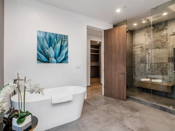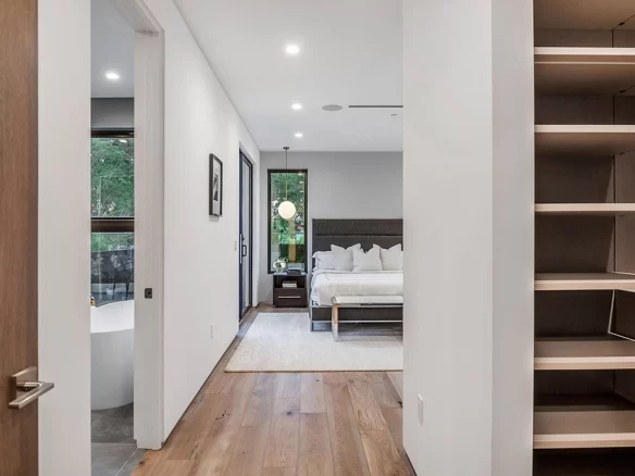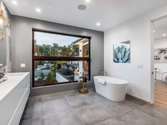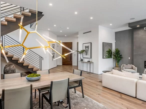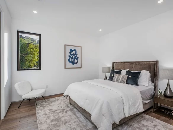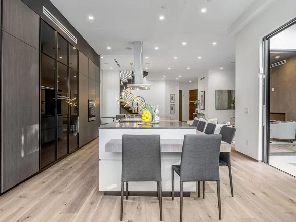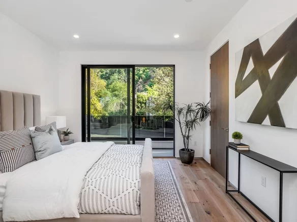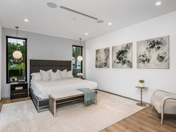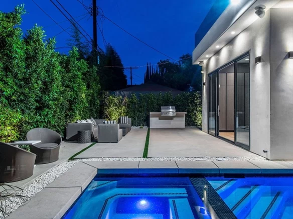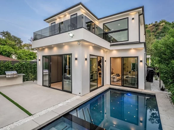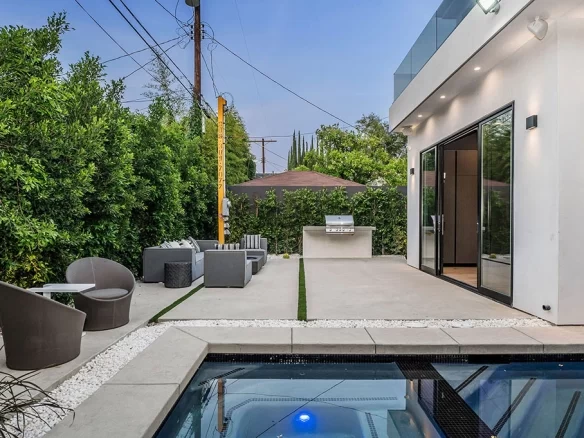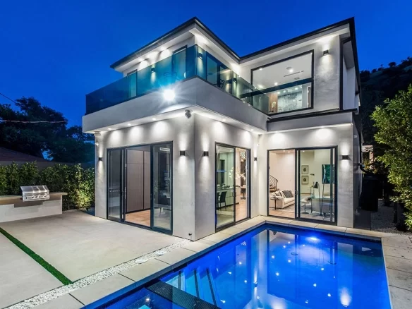 Stunning 2020 new construction in the highly sought-after Silver Triangle neighborhood in Studio City, designed and built by Arzuman Brothers. This uniquely designed California contemporary home features the perfect blend of inside/outside flow and open space design. The gourmet kitchen includes a spacious large island, custom made cabinetry, state of the art appliances, and an attached breakfast table. The private backyard is surrounded by ficus trees and features a pool, spa, fire pit, and a BBQ grill bar. All bedrooms are en-suite and on the top floor. Once you retreat to the master suite, you will find a perfect harmony of bedroom, bathroom, walk-in closet, and private balcony overlooking the backyard. Moments away from shops and restaurants on Ventura Blvd and close to some of the best private and public schools in Southern California. Full smart home that controls music, lights, air conditioning, cameras, security system, and much more. Electric car charger and solar hookups ready.