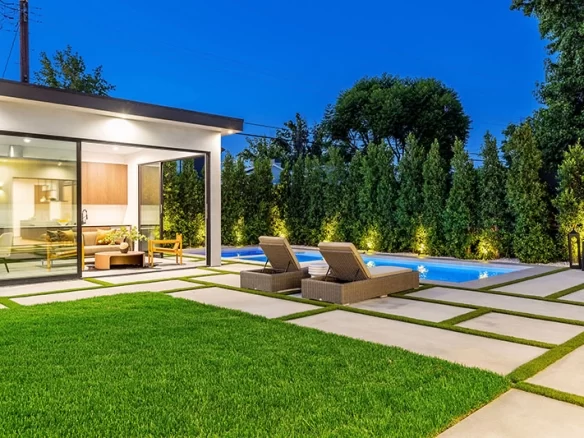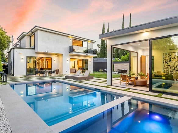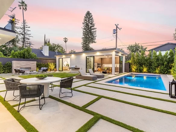 Welcome to this magnificent new construction home in the prime Encino flats, designed and built by Arzuman Brothers. This stunning residence offers the perfect blend of luxury, craftsmanship, and modern elegance. Step inside and be captivated by the open floor plan that seamlessly integrates the living areas, creating a welcoming and expansive environment. The high ceilings add to the grandeur, while the abundance of natural light enhances the overall ambiance. Indulge your culinary desires in the gourmet kitchen, equipped with top-of-the-line Miele and Thermador appliances, dual center islands for effortless meal preparation, and ample storage space including a walk-in pantry. The backyard is a true oasis, offering a wealth of amenities for outdoor enjoyment. Relax and unwind in the pool and spa, perfect your golf skills on the putting green, or simply unwind by the outdoor gas fireplace. The private backyard is surrounded by lush ficus trees, ensuring privacy and tranquility. One of the standout features of this property is the detached Accessory Dwelling Unit (ADU), complete with a living room, full bathroom, and kitchen. This versatile space can be used as a guest house, office, or gym, providing endless possibilities. Situated in close proximity to Encino Charter Elementary School and conveniently located near shopping, dining, and major freeways, this home combines luxury living with convenience.
