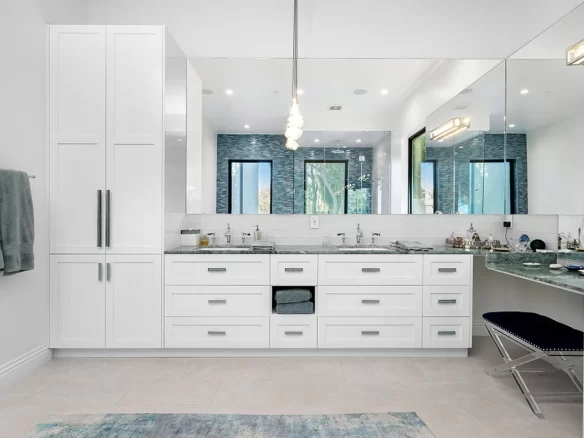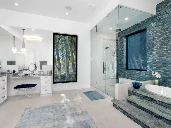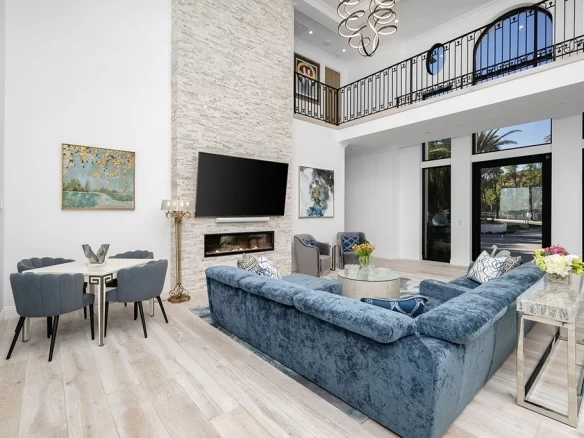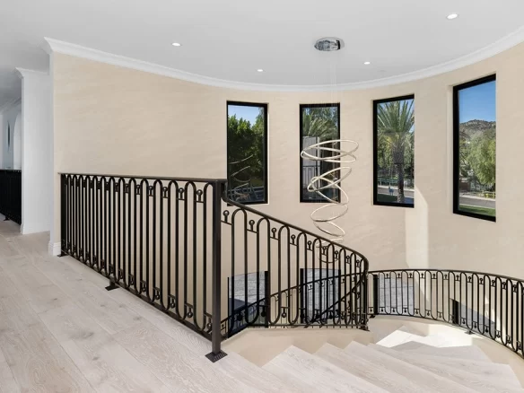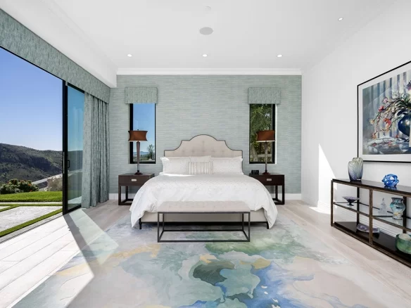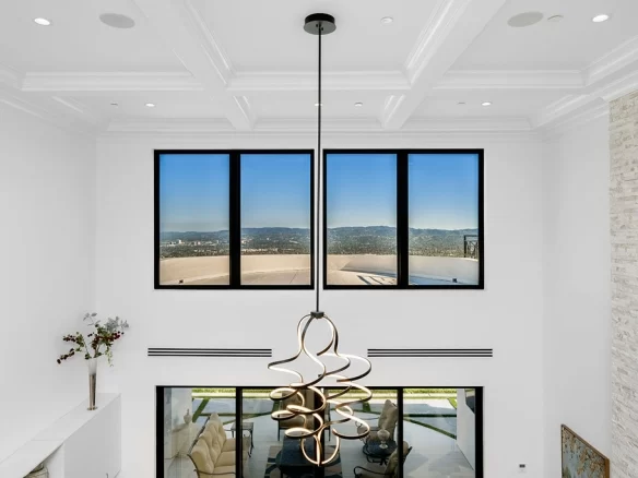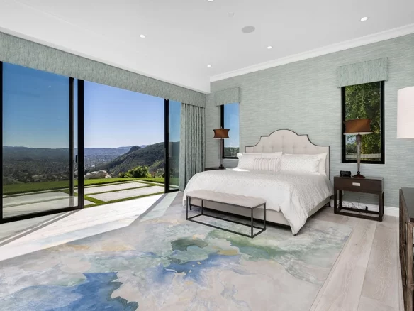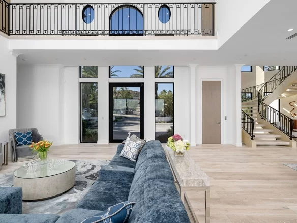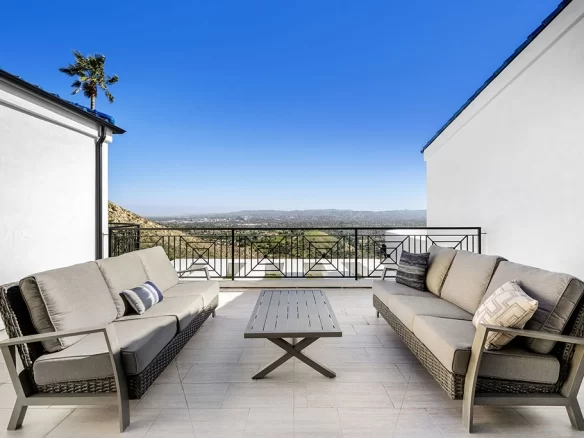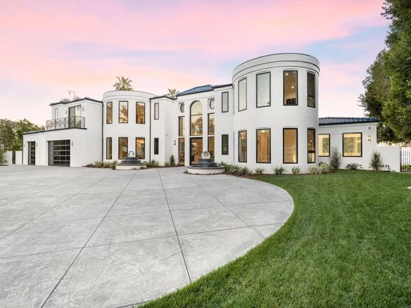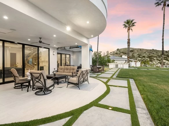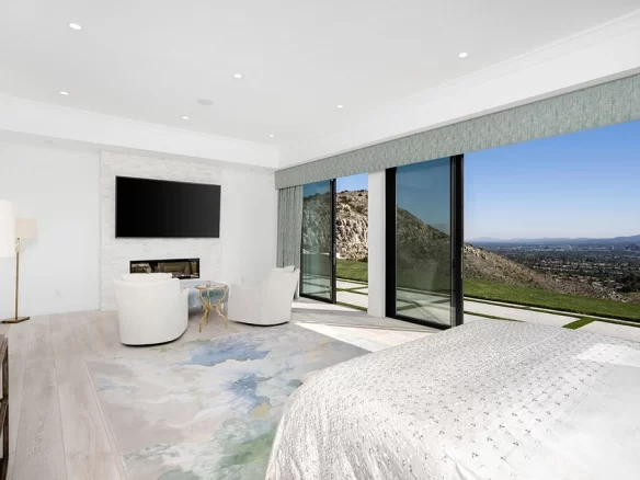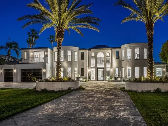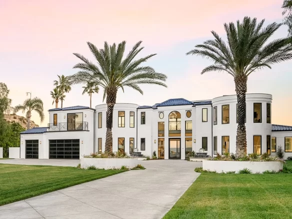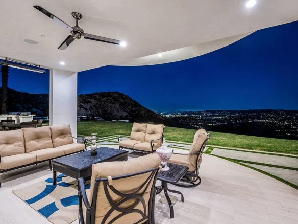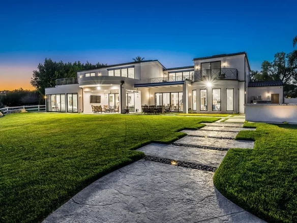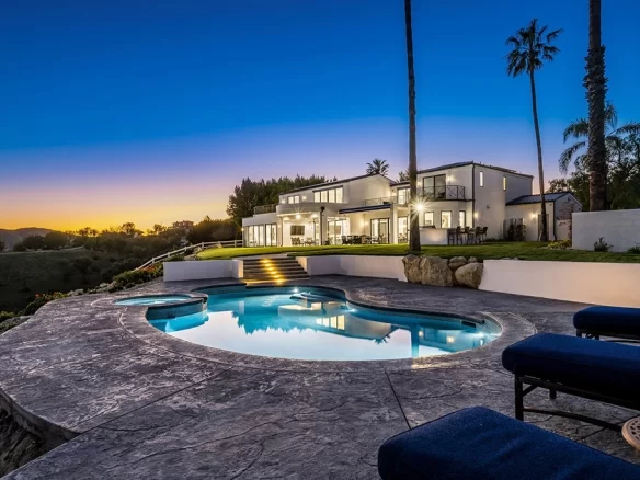 Spectacular mansion situated in Bell Canyon, proudly built and designed by Arzuman Brothers in 2021. Situated on a 1.67 acre lot, this stunning 6,650 sqft home features anything you would ever desire in your own private compound. Upon entering, you are greeted with soaring 24 foot ceilings and dramatic curved staircase. The magnificent kitchen with professional-grade appliances, and the spacious living and dining areas are beautifully combined into one large, open space with timeless materials and meticulous details. The lavish backyard includes a BBQ bar, covered and open patio areas, and a beautifully constructed edgeless pool with a jacuzzi corner, all opening an astonishing 180 degree hilltop view of the Los Angeles city.