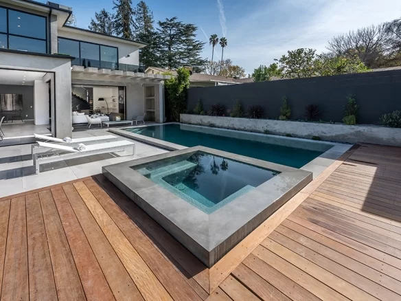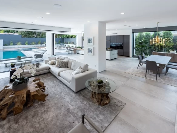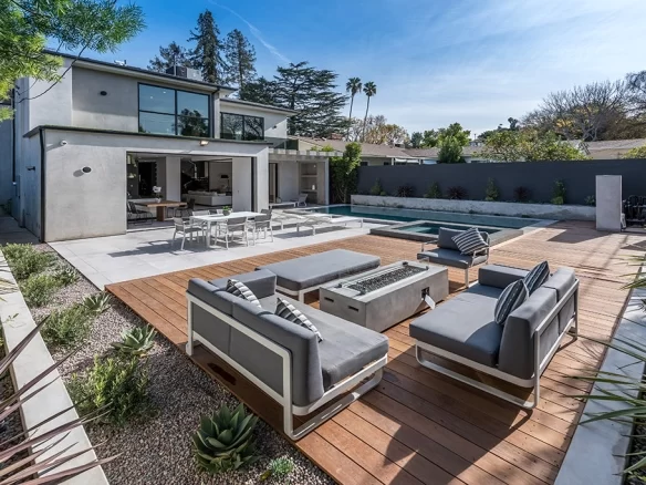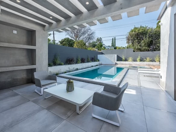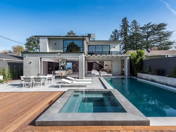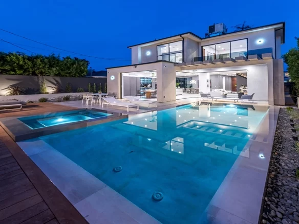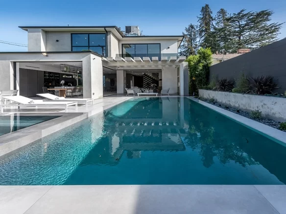 Stunning 2018 new construction south of the boulevard in of Sherman Oaks, proudly built and designed by Arzuman Brothers. The massive walnut front door of this modern masterpiece welcomes you to the the perfect blend of inside/outside flow and open space design. Gourmet kitchen with Miele appliances and spacious large island with custom cabinetry throughout. The kitchen presents professional grade refrigerators that posses new technology capabilities of self closing and opening doors as well as touch screens. Fully smart home that controls music, lights, air conditioning, cameras, and security system. High end Aquabrass plumbing fixtures as well as solid walnut doors throughout the house. The luxurious Italian tiles in the living room and kitchen flow smoothly through the custom pocket doors into the backyard. With the edgeless infinity pool, covered patio, and raised deck for entertaining, this home showcases California living at its finest. Walking distance to Ventura Blvd restaurants and shops.