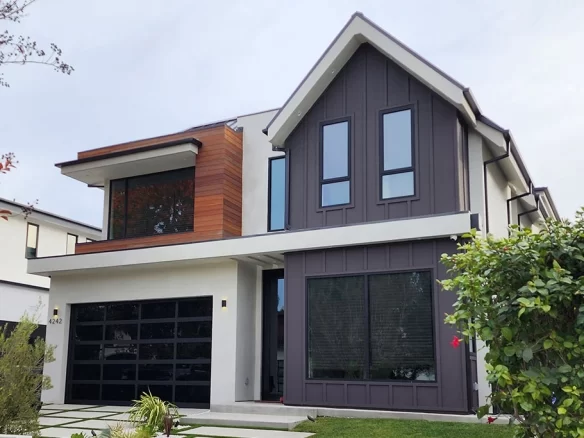 A modern new construction in Studio City is designed and built by Arzuman Brothers in 2022. This two-story single-family home is designed with the finest materials along with unmatched craftsmanship, and features an open layout design with high ceilings and large windows flooding the home with plenty of natural light. Inside you will find a spacious kitchen with professional grade-appliances, custom cabinetry, and a large island with an attached breakfast table. The beautiful staircase leads to the second floor, where you can find the master bedroom with an expansive walk-in closet and a lavish en-suite bathroom. All the remaining bedrooms are en-suites with bathrooms featuring porcelain throughout, and Italian-designed vanities.