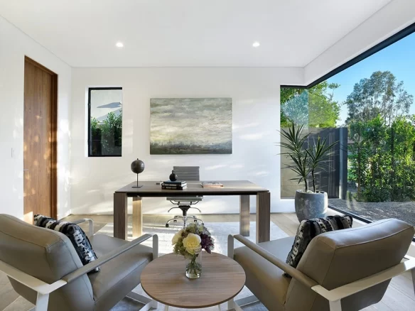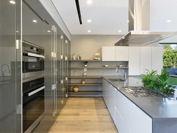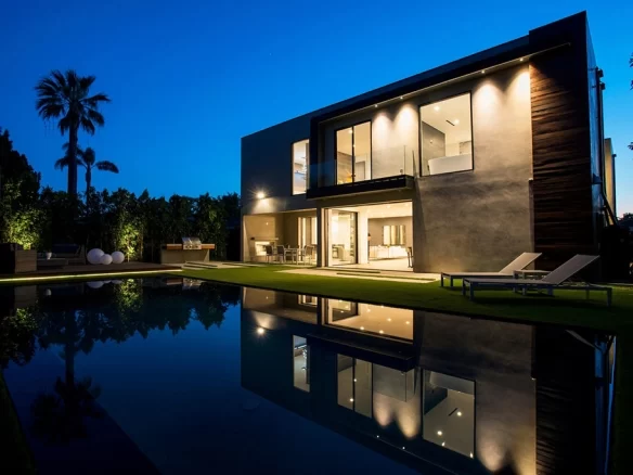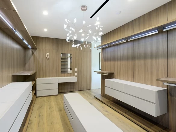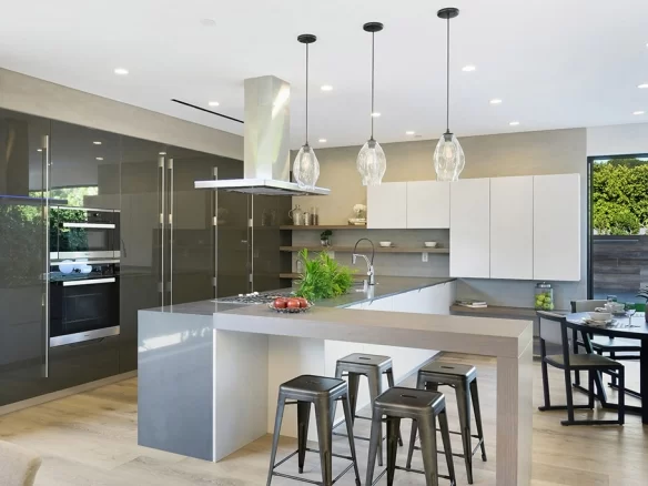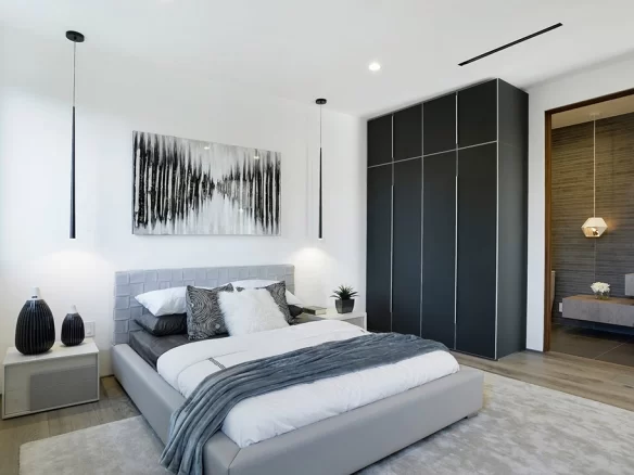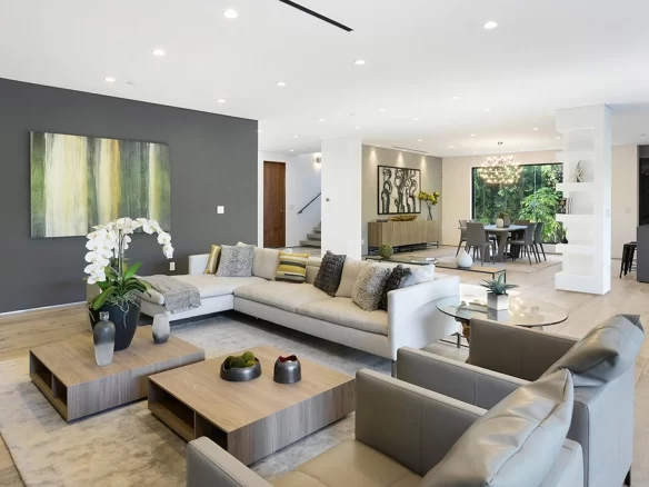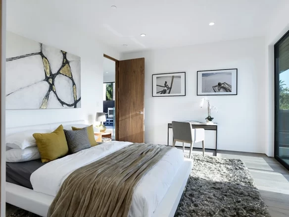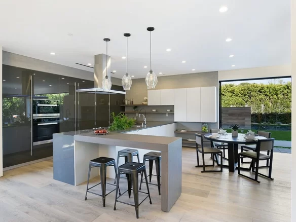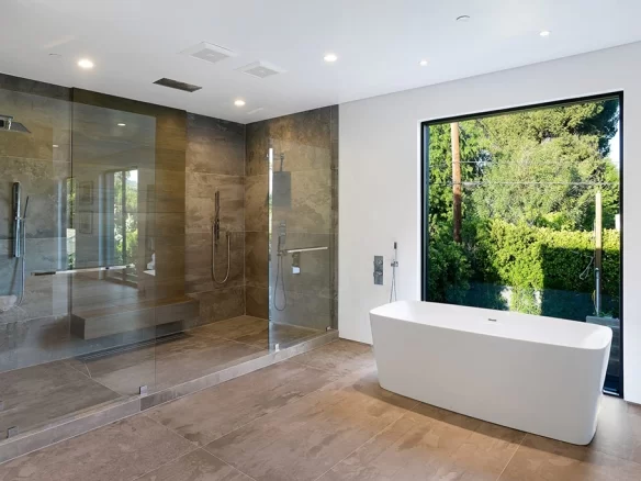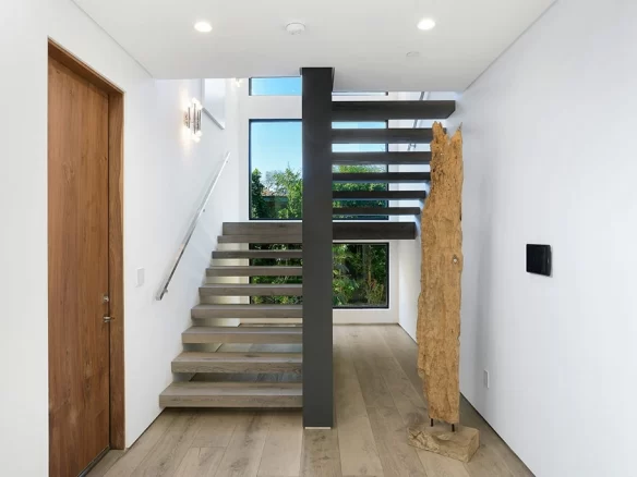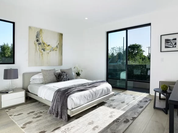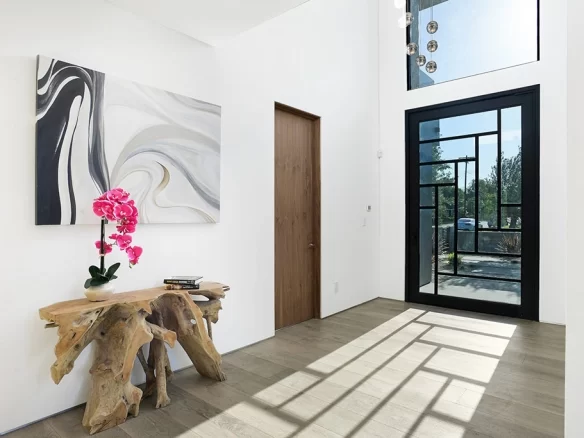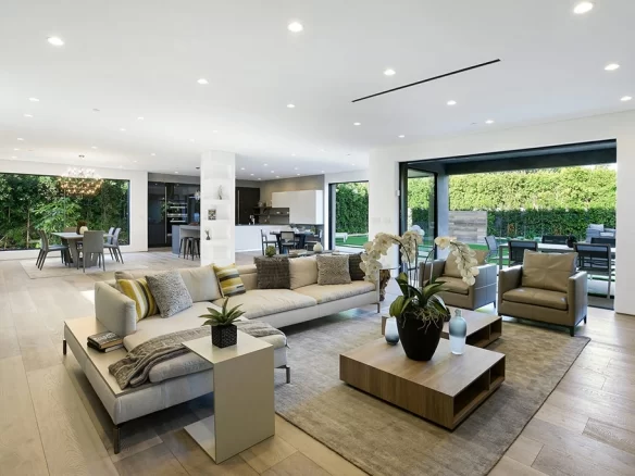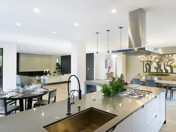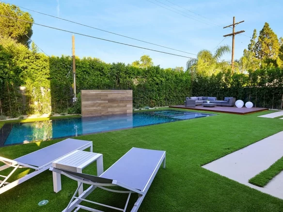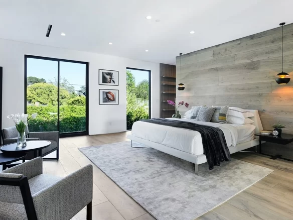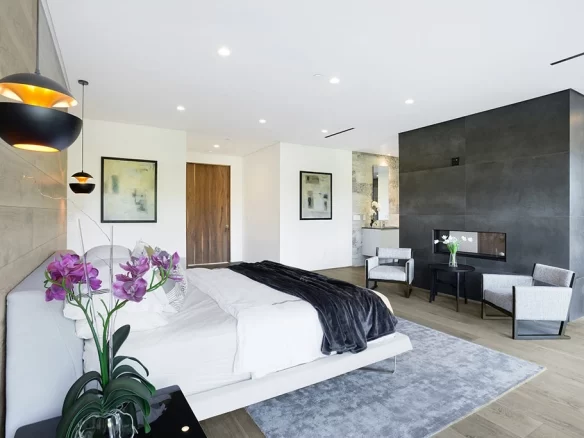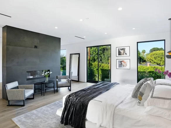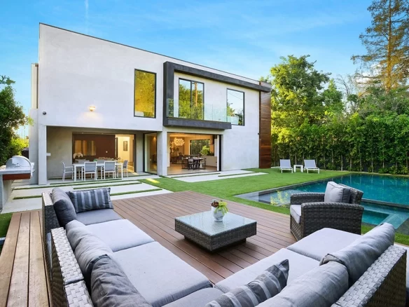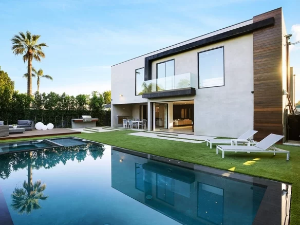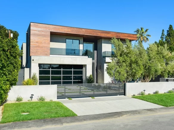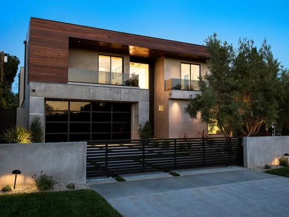A stunning, modern residence nestled on a quiet street in sought-after Studio City. Newly built by Arzuman Brothers in 2017, this 5-bedroom, 6-bathroom masterpiece blends state-of-the-art technology and style with quality touches that underscore its quality construction. Solid walnut doors. Italian plaster. Custom-built Miele appliances. Invisible speakers. An open floor plan flows seamlessly into a progressively landscaped backyard, with a cascading fountain, edgeless pool, deck, fireplace and built-in grill. An entertainer’s dream.
