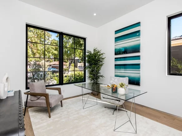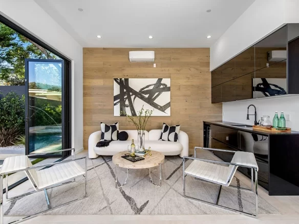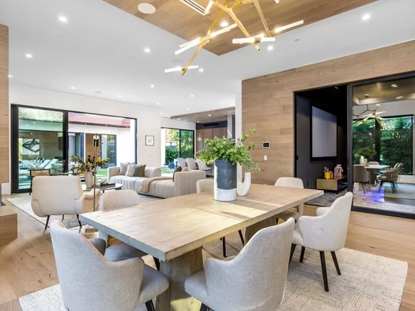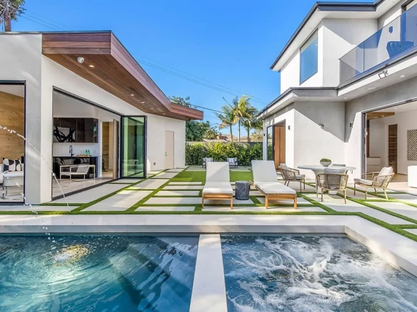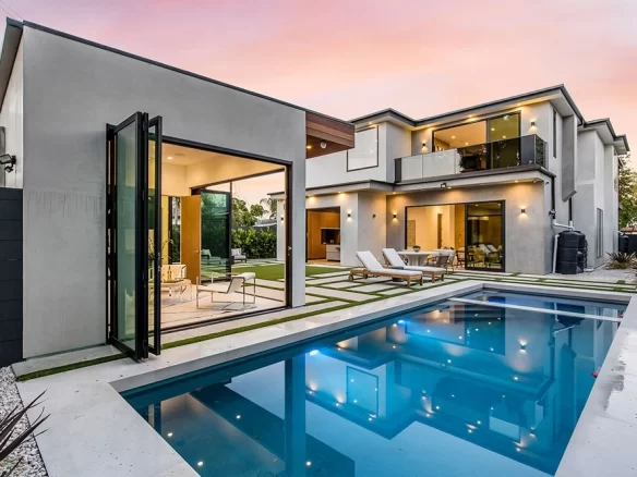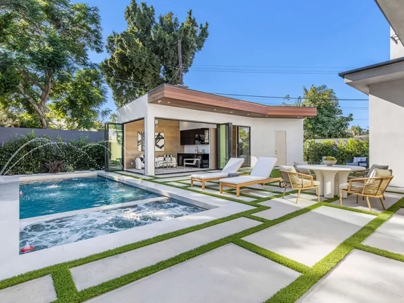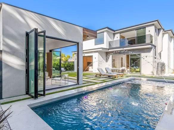 Welcome to this magnificent new construction home situated in the esteemed North Kentwood neighborhood, designed and built by Arzuman Brothers. This stunning residence offers the perfect blend of luxury, craftsmanship, and modern elegance. Step inside and be captivated by the open floor plan that seamlessly integrates the living areas, creating a welcoming and expansive environment. The high ceilings add to the grandeur, while the abundance of natural light enhances the overall ambiance. Indulge your culinary desires in the gourmet kitchen, equipped with top-of-the-line appliances, large island with an attached breakfast nook, and ample storage space including a walk-in pantry. The property also comes with a movie theatre, catering to both leisurely watches and movie enthusiasts’ nights. The Fleetwood glass sliding doors gracefully transition you to an exquisite backyard oasis, boasting a pristine pool and spa, a cozy firepit lounge, and multiple seating and entertaining areas thoughtfully dispersed throughout, making it an ideal retreat for relaxation and hosting. Once you venture to the master suite, you’ll discover a large walk-in closet fit for royalty, a spa-like bathroom designed for ultimate relaxation, and a balcony, offering a serene spot to enjoy your morning coffee or an evening read. One of the standout features of this property is the detached Accessory Dwelling Unit (ADU), complete with a living room, kitchen, full bathroom with steam shower, and separate bedroom. This versatile space can be used as a guest house, office, or gym, providing endless possibilities.